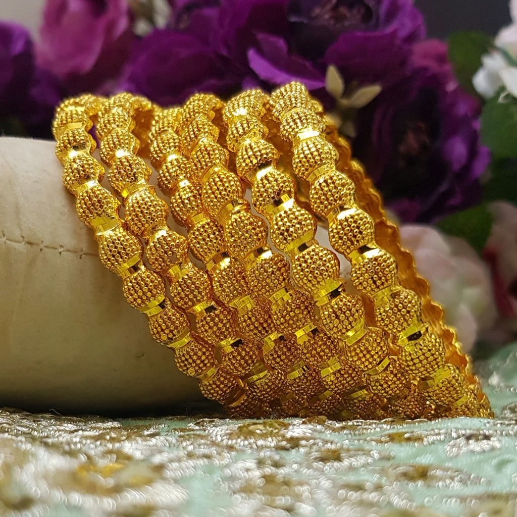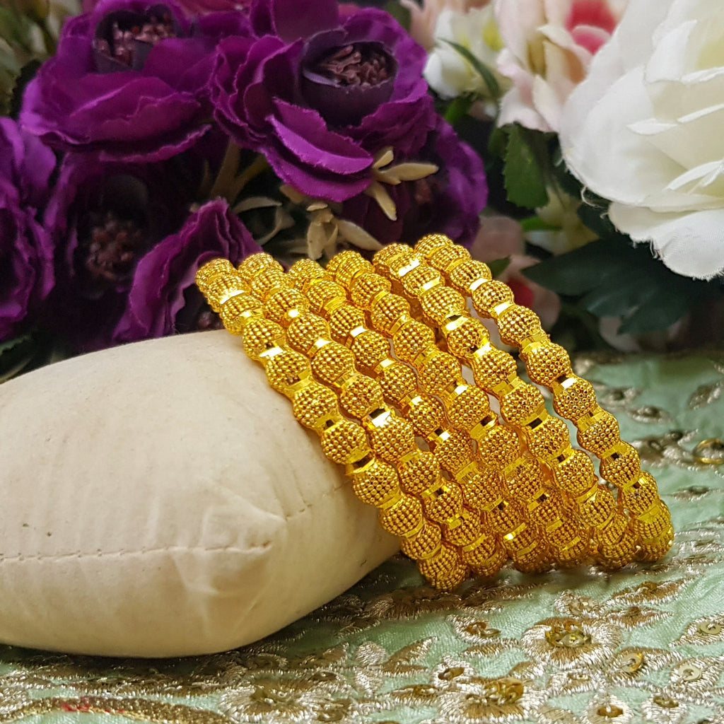 Capture a glimpse of radiance with our Gleaming Glimpse Gold Look Bangles, meticulously crafted to infuse your ensemble with timeless allure. Each bangle features a captivating gold look finish that exudes opulence and sophistication, making it the perfect accessory for any occasion. Designed to make a statement, these bangles offer versatility and charm. Whether worn individually for a subtle gleam or stacked for a bold look, they are sure to elevate your ensemble with regal grace. Discover the essence of sophistication with our Gleaming Glimpse Gold Look Bangles.