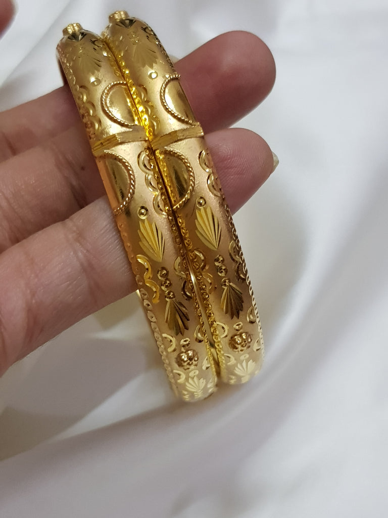 Step into a world of elegance with the Gleaming Spin Like Gold Bangles from the Asianest. These beautifully designed bangles feature a radiant gold-like finish that spins with every move, creating a mesmerizing shimmer. Perfect for adding a touch of glamour to any outfit, these bangles are a must-have accessory for those who appreciate style and sophistication.