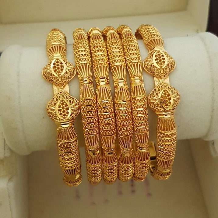 Description: Enhance your ensemble with our Glossy Gold Tone Affluent Legacy Bangles, designed to embody elegance and refinement. Each bangle in this set features a glossy gold tone finish that exudes opulence and sophistication. Perfect for any occasion, these bangles carry a sense of affluent legacy, adding a touch of timeless charm to your look.