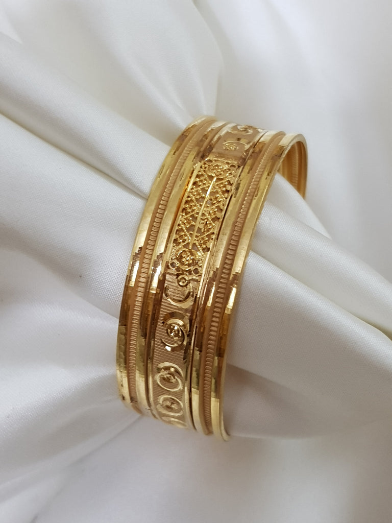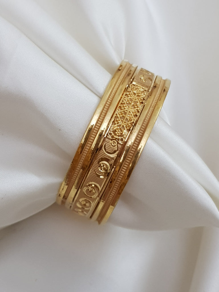 Radiate elegance with our Gold Shine Kara. Each piece is meticulously crafted to exude a lustrous shine that captivates attention and adds a touch of sophistication to any look. Versatile for various occasions, this exquisite Kara celebrates the timeless allure of gold with its radiant glow.