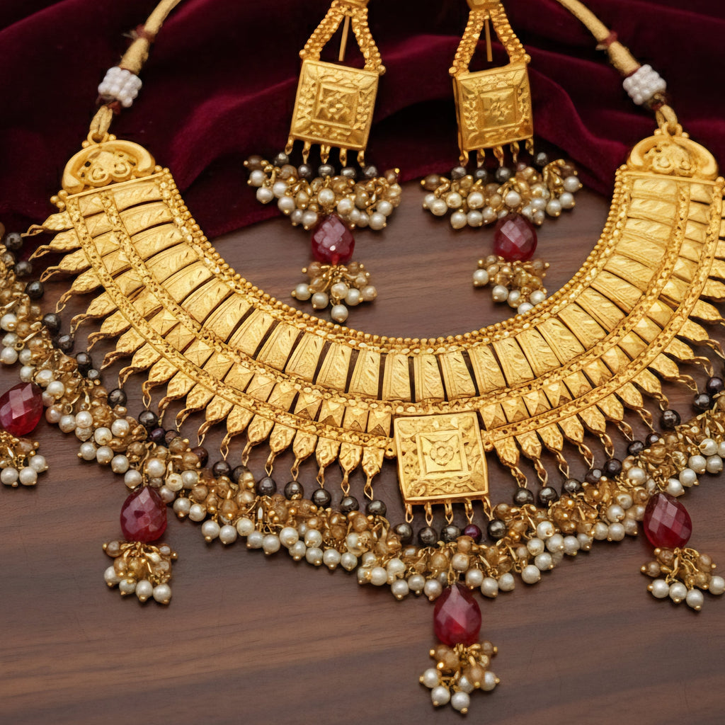 Golden Radiance Bridal Necklace Set – Opulent Wedding Jewelry