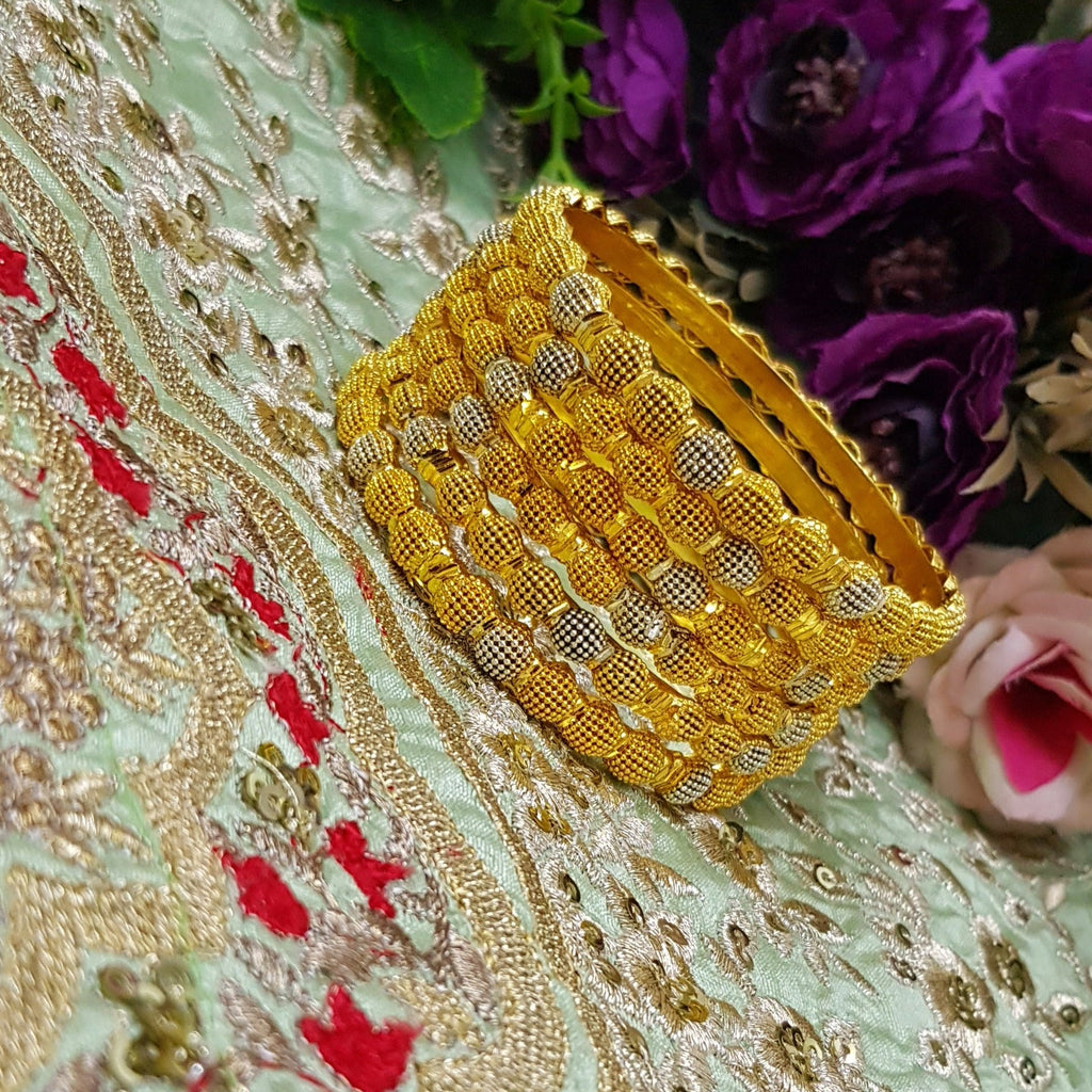 Experience the radiance of our Golden Release Gold Plated Bangles, meticulously crafted to adorn your wrists with timeless elegance. Each bangle features a lustrous gold plating that exudes opulence and allure, making it the perfect accessory for any occasion. Designed to make a statement, these bangles offer versatility and sophistication. Whether worn individually for a subtle gleam or stacked for a bold look, they are sure to elevate your ensemble with regal grace. Step into sophistication with our Golden Release Gold Plated Bangles.