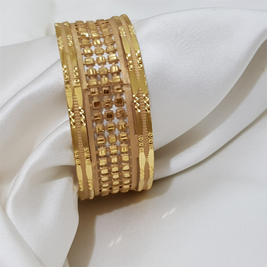 Indulge in the timeless allure of our Majestic Legacy Gold Color Kara/Bangles. Each piece is meticulously designed to exude grandeur and sophistication. Versatile for any occasion, these majestic accessories add a touch of regal charm to your ensemble, celebrating the enduring legacy of gold tones.