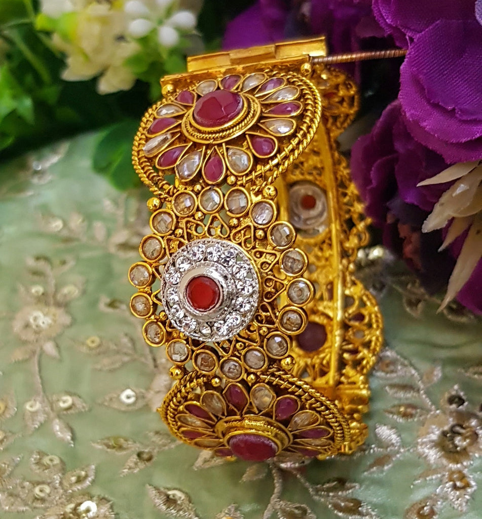 Experience the epitome of elegance with our ParamountMatte Gold Rajwadi Kara, a symbol of timeless grace and grandeur. Each Kara showcases intricate Rajwadi designs meticulously crafted in a radiant matte gold hue, exuding unparalleled opulence. Perfect for cultural celebrations or upscale events, this Kara adds a touch of regal charm to any attire. Make a statement of paramount sophistication with the ParamountMatte Gold Rajwadi Kara.