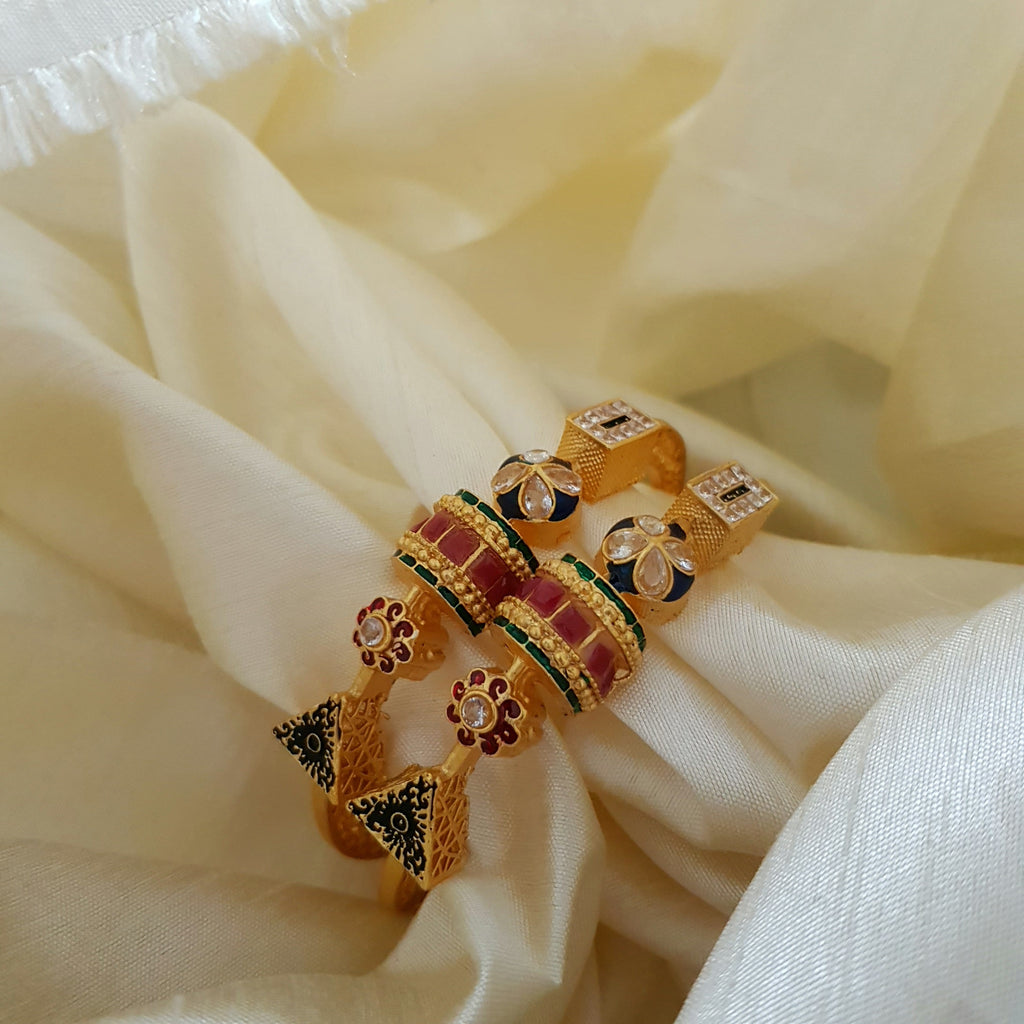 Illuminate your ensemble with our Rajwadi RadiantMatte Gold Plated Kara. This exquisite piece boasts a radiant matte gold finish, exuding regal elegance and timeless charm. Crafted with precision and adorned with intricate details, it adds a touch of grandeur to any look.