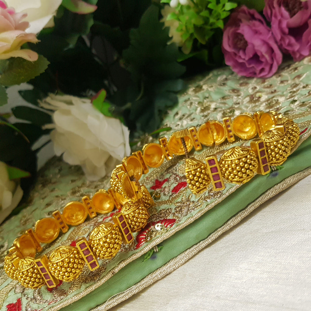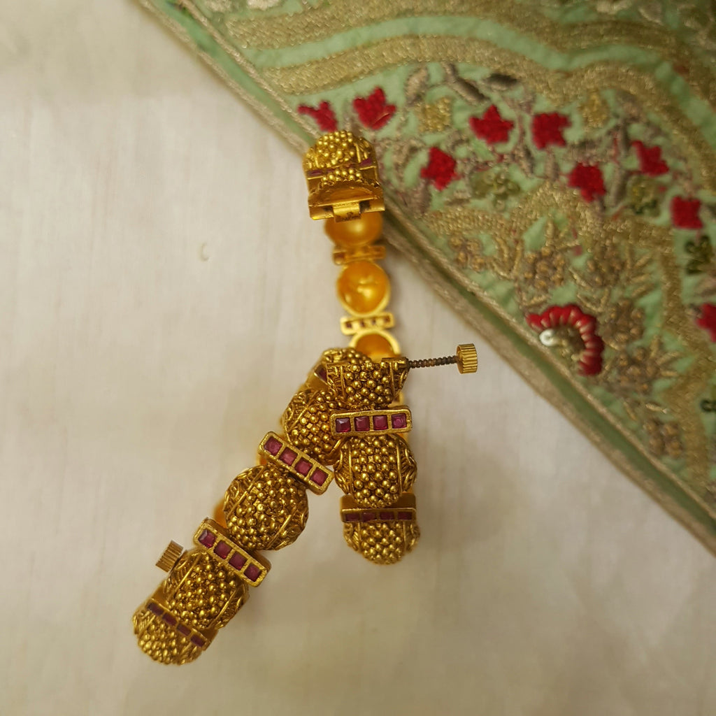 Experience opulence with our ResplendentMatte Golden Rajwadi Kara, a symbol of regal elegance and timeless beauty. Crafted with intricate detailing and finished in a matte golden hue, this Kara exudes grandeur and sophistication, perfect for elevating any ensemble with a touch of Rajwadi charm.