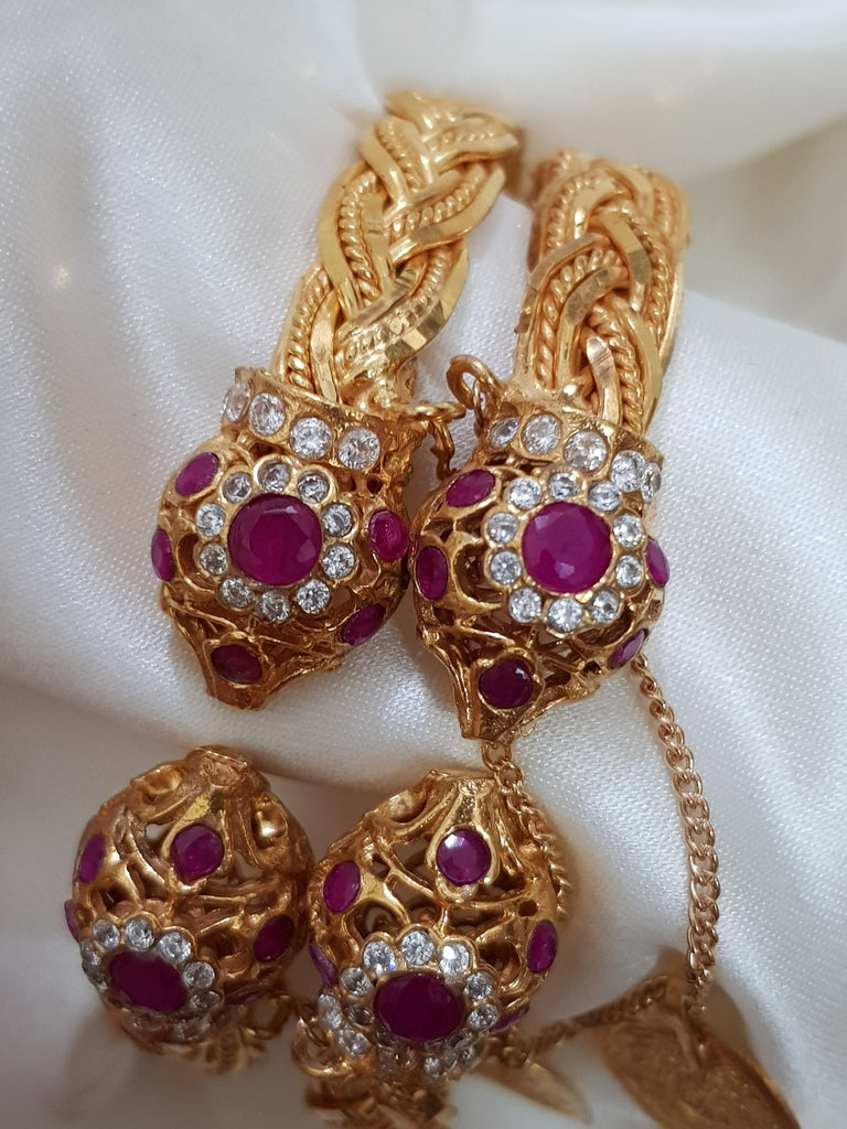 Experience sacred splendor with our gold-polished Karay/Bangles adorned with real stones. Meticulously crafted, each piece exudes divine elegance and opulence. Versatile for any occasion, these karay/bangles add a touch of sacred beauty to your ensemble, celebrating the divine allure of radiant gold and genuine stones.