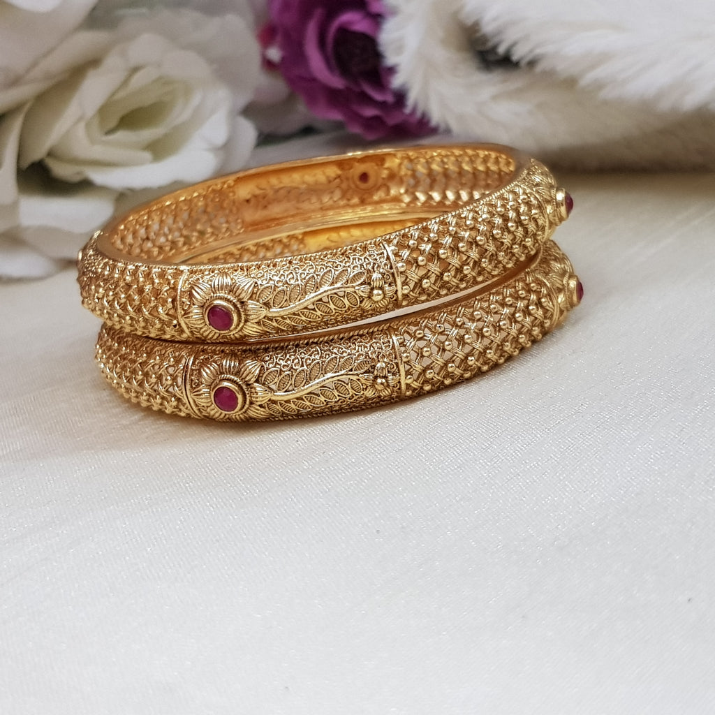 Introducing our SplendidMatte Gold Rajwadi Twist Bangles, a fusion of elegance and tradition. Crafted with intricate twists and adorned in mesmerizing matte gold, these bangles encapsulate the essence of Rajwadi craftsmanship. Elevate your ensemble with a touch of regal splendor and timeless allure, celebrating the rich cultural heritage of Rajwadi artistry. Make a statement of sophistication and grandeur with the SplendidMatte Gold Rajwadi Twist Bangles.
