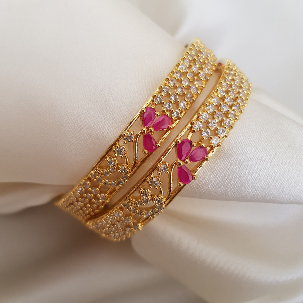 Illuminate your attire with the Zarconia Luminescence One Karat Bangles, each emitting a mesmerizing glow that captivates attention. Adorned with a single karat of captivating brilliance, these bangles epitomize opulence and allure. Their timeless design effortlessly transitions from casual to formal, ensuring you dazzle on every occasion.